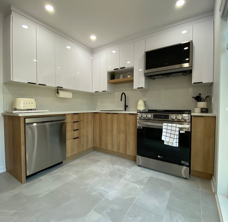 Nous offrons une large gamme de services de rénovation intérieure, y compris la création de cuisines sur mesure, la rénovation de salles de bain, l'installation d'escalier et la pose de revêtement de sol.