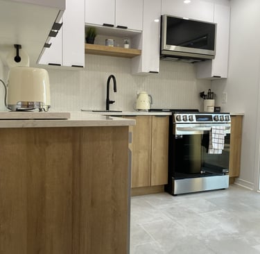 Nous offrons une large gamme de services de rénovation intérieure, y compris la création de cuisines sur mesure, la rénovation de salles de bain, l'installation d'escalier et la pose de revêtement de sol.